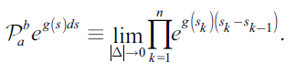 and a function g continuous on [a,b], the (geometric) product integral (cf. Krein, 2011) is defined by