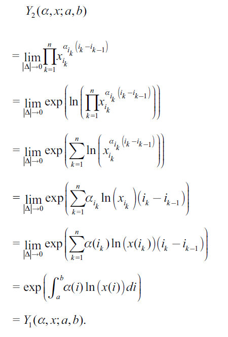 From these two definitions, the type 2 Cobb-Douglas function can be written using the Riemann product integral.
