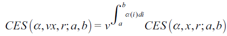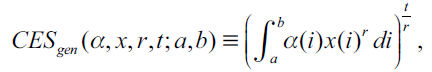 Palabras clave: función CES, función Cobb-Douglas, continuo, integral producto, derivada funcional.
