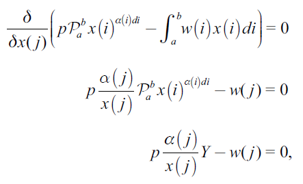 In this section, we solve the necessary first-order condition in the profit maximization problem of a single competitive firm using a continuum of inputs. The purpose of this example is not to analyse the complicated variational problem in all its depth, (this would require steps such as proving that