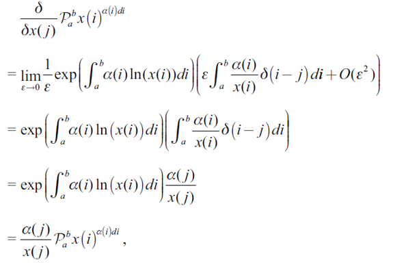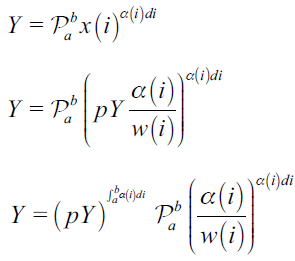 In the previous section, the Cobb-Douglas function was defined as a limiting case of a proper CES function. This section provides a new definition based on constructive principles that use the product integral. Product calculus is a multiplicative generalization of standard (additive) infinitesimal calculus, which has been around since the 19th century when Volterra used it to resolve certain ordinary differential equations. The concept of product integral naturally arises in various areas of mathematics and physics (Manturov, 1991), but its application to the Cobb-Douglas function for a continuum model has, until now, been overlooked.