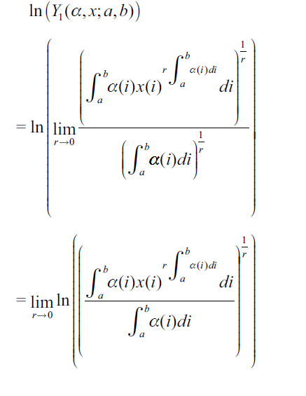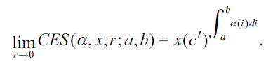 Now, an appropriate definition of the Cobb-Douglas function for a continuum can be developed as a limiting case of the CES function. This is because Lemma 4 assures us that, in general, it is a finite non-null quantity. Furthermore, the Cobb-Douglas function so defined inherits the elasticity property of Theorem 3 from the CES function. In other words, the new Cobb-Douglas definition will be a well-behaved functional.
