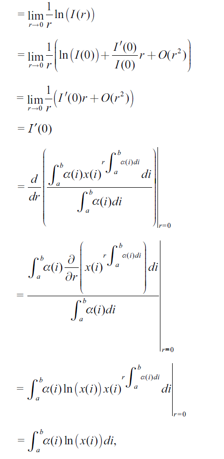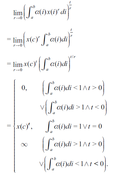 to implies the second line. Given that the function x(i)r is positive on [ a,b ], x(c)r is positive, and, therefore, the third line logically follows. The final line computes the limit using the fact that