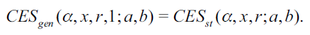 which is a homogeneous function of degree t. The αi's values are non-negative constants, which depend on technology (for a production function) or preference (for a utility function). The (possibly negative) parameter r is a technological (or preference) constant related to the elasticity of substitution (cf. Saito, 2012). The xi variables are factors of production (for a production function) or quantities of goods (for a utility function). In the following, we will always consider A = 1.