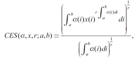 Definition 2. A CES function for a continuum, with not necessarily constant returns to scale, can be defined as